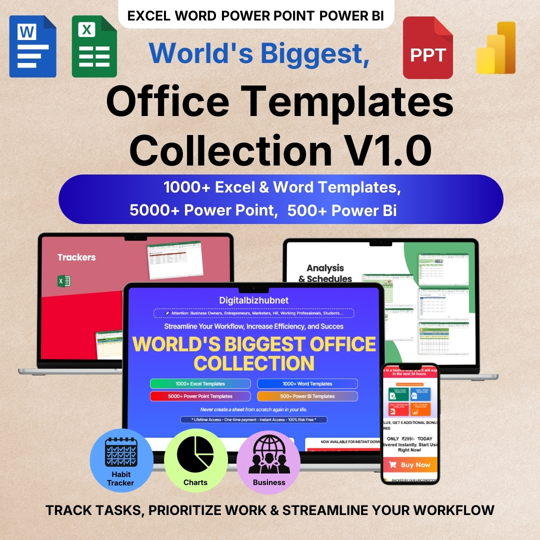 Be the first to review “Biggest Office Template Collection -1000+ Excel Templates 1000+ Word Templates 5000+ Power Point Templates 500+ Power Bi Templates” Cancel reply