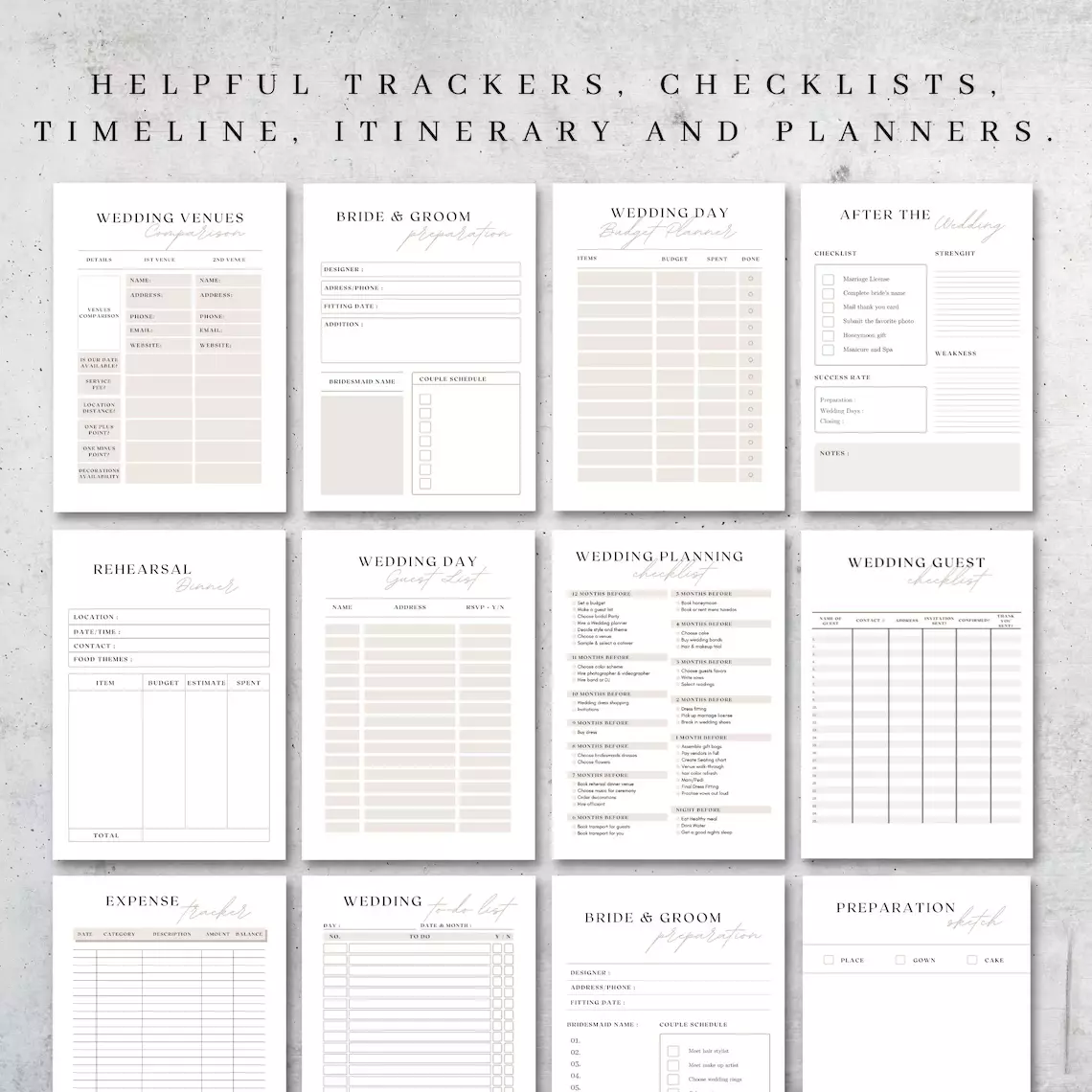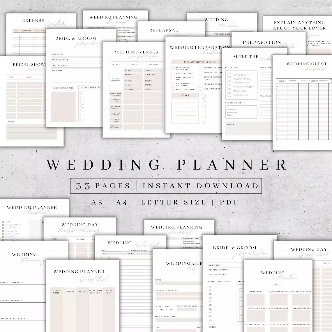 Wedding Planner Printable | Printable Wedding Planner Pages | Wedding Plan Bundle | Wedding Planning Book | Wedding Planner PDF, A4, A5, 2026 This is a printable WEDDING planner to manage your wedding budget, itinerary, and timeline. It easily helps to achieve the biggest couple and wedding day goals in just a few steps. Organizing this perfect day and creating checklists is the first, big step to leading a successful and happy wedding experience. This minimalist planner will help you get organized and get the most out of your expensive time.